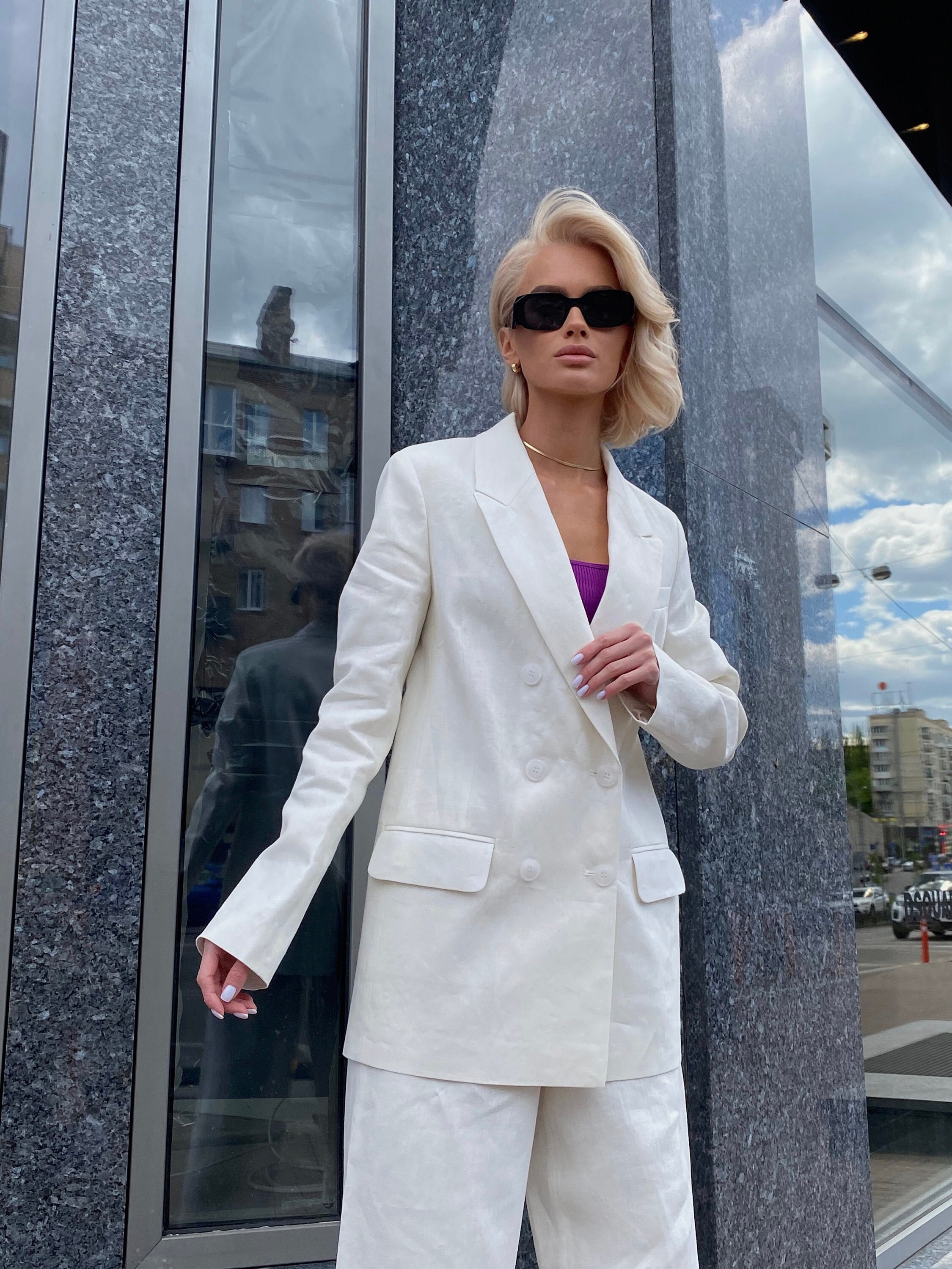 Web White linen suit separates.