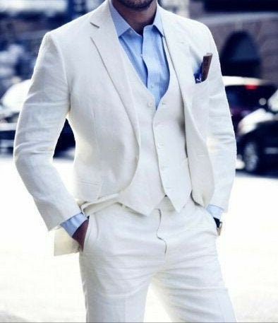 mens white linen pants suit